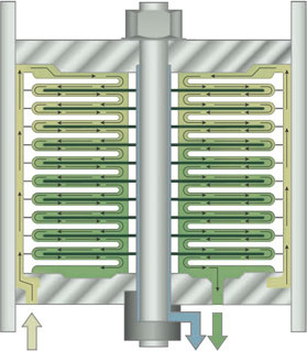 碟管式膜技術(shù)簡稱 DT, 常見為DTRO和DTNF, 它的膜組件構(gòu)造特殊。DT膜組件采用高強度,耐壓設(shè)計,能夠克服更高的滲透壓,帶有凸點的導流盤形成獨特的開放式流道,對預處理要求低,提高了膜抗污染能力,清洗更徹底,延長膜使用壽命。