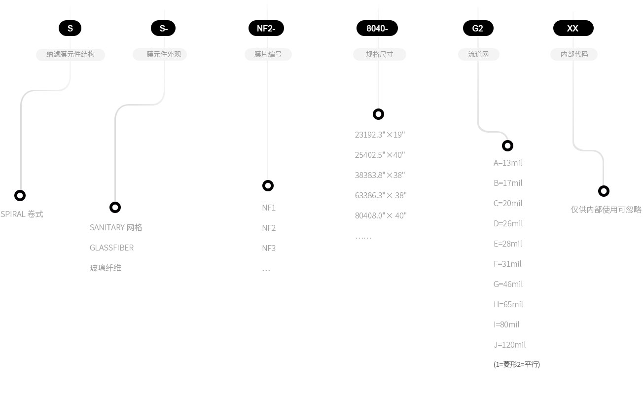 各種規(guī)格的膜元件可供選用